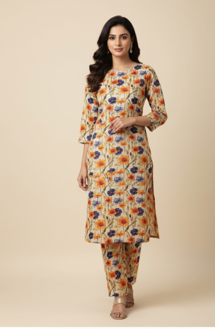 LINEN SUIT Product Details : Elevate your winter style with our printed two-piece and multicolored ensemble, featuring a digital printed