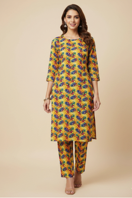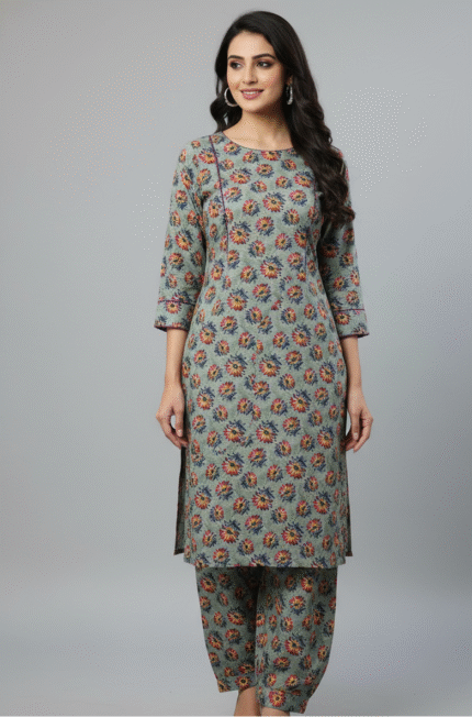 LINEN SUIT Product Details : Elevate your winter style with our printed two-piece and multicolored ensemble, featuring a digital printed